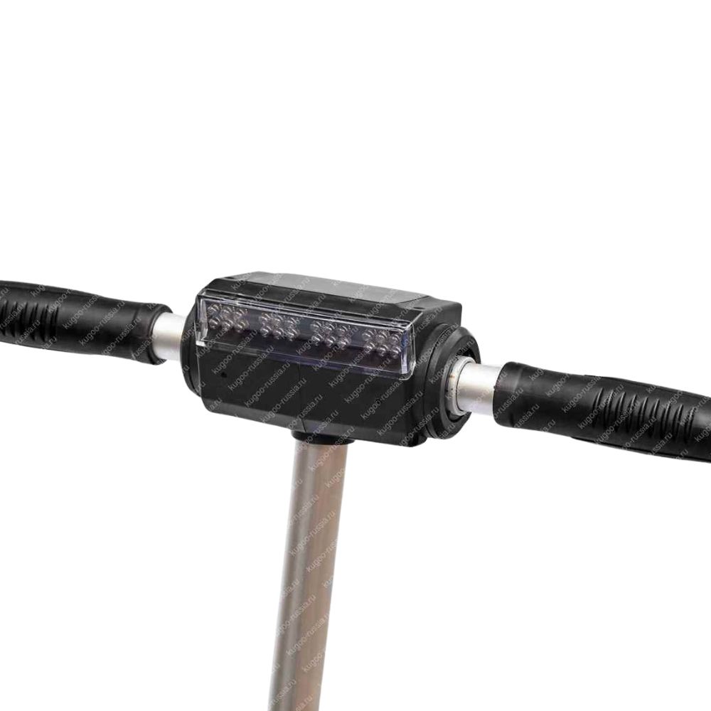 Электросамокат имеет небольшой вес и габариты, позволяющие не только кататься на нем, но и ездить с комфортом в общественном транспорте. Колеса скутера изготовлены из цельной резины, спереди и сзади установлены пружинные амортизаторы. Мощность «движка» составляет 350 Вт. Этого достаточно, чтобы развить скорость до 30 км/час. Оригинальный самокат от Kugoo выпускается в черном, белом и сером цвете. Рассчитан на ездоков весом не более 120 килограммов.