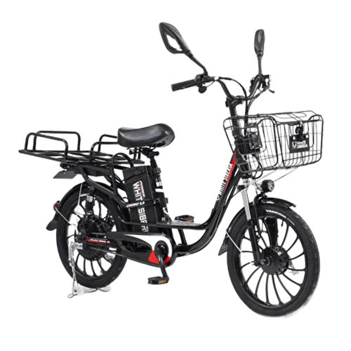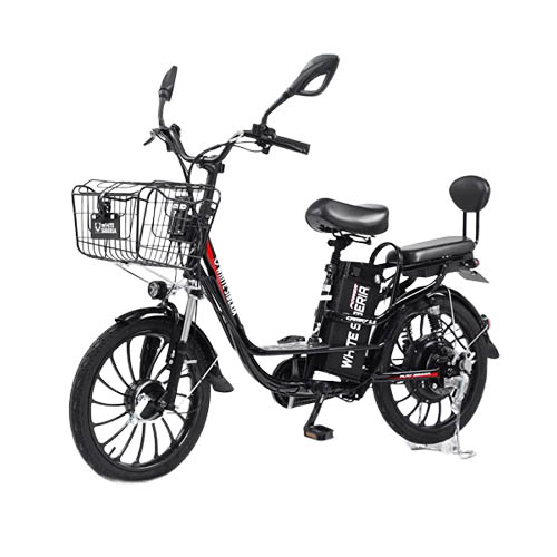 В данной модели установлены 20-дюймовые колеса. Рама велогибририда имеет заднюю подвеску с усиленными пружинами, а так же усиленные диски из авиационного алюминия. Это позволяет загрузить задний «хвост» WHITE SIBERIA CAMRY до 120кг. В комплекте идет металлический держатель сумки-доставки и удобная корзинка спереди. Вы также можете установить на багажник детское кресло или закрепить груз.