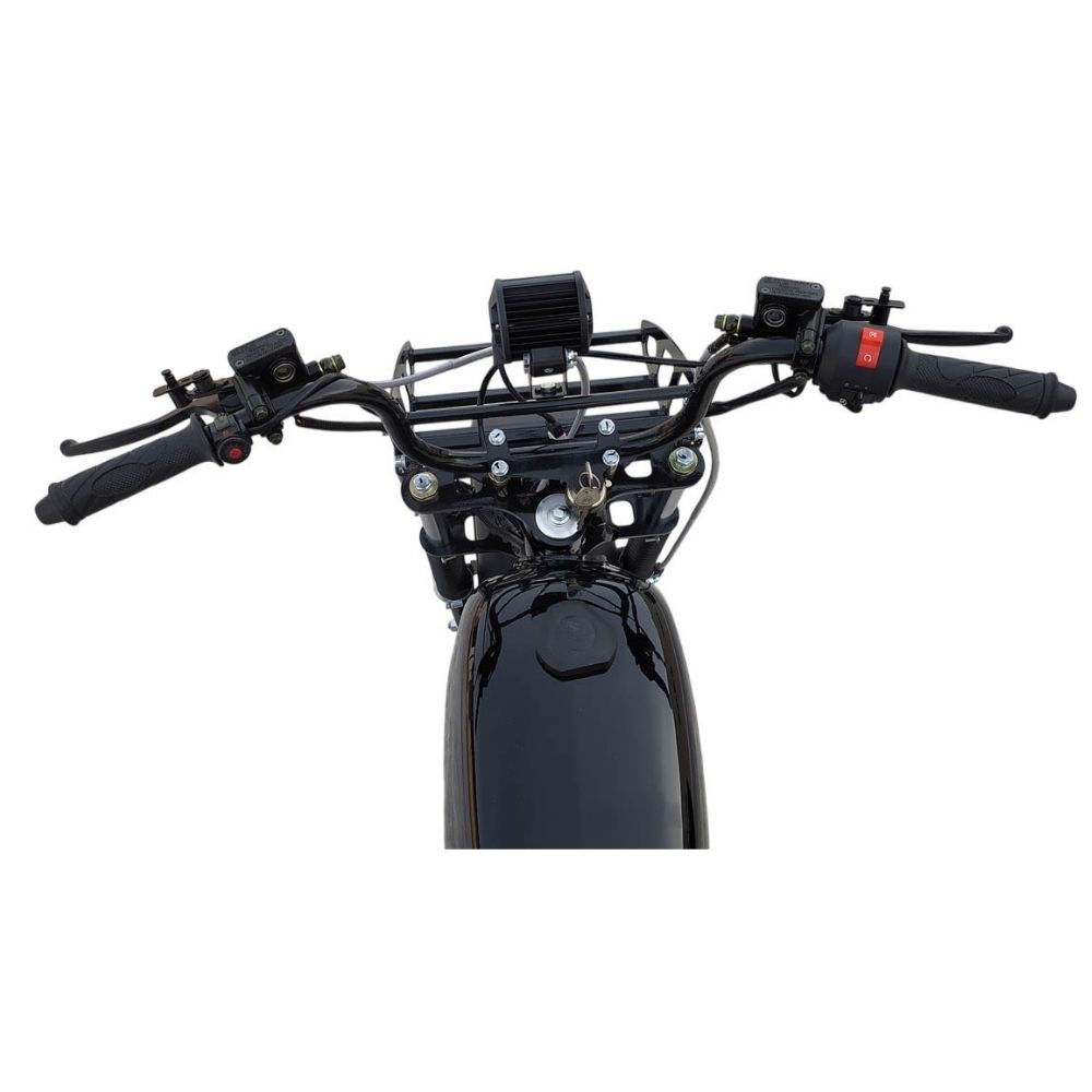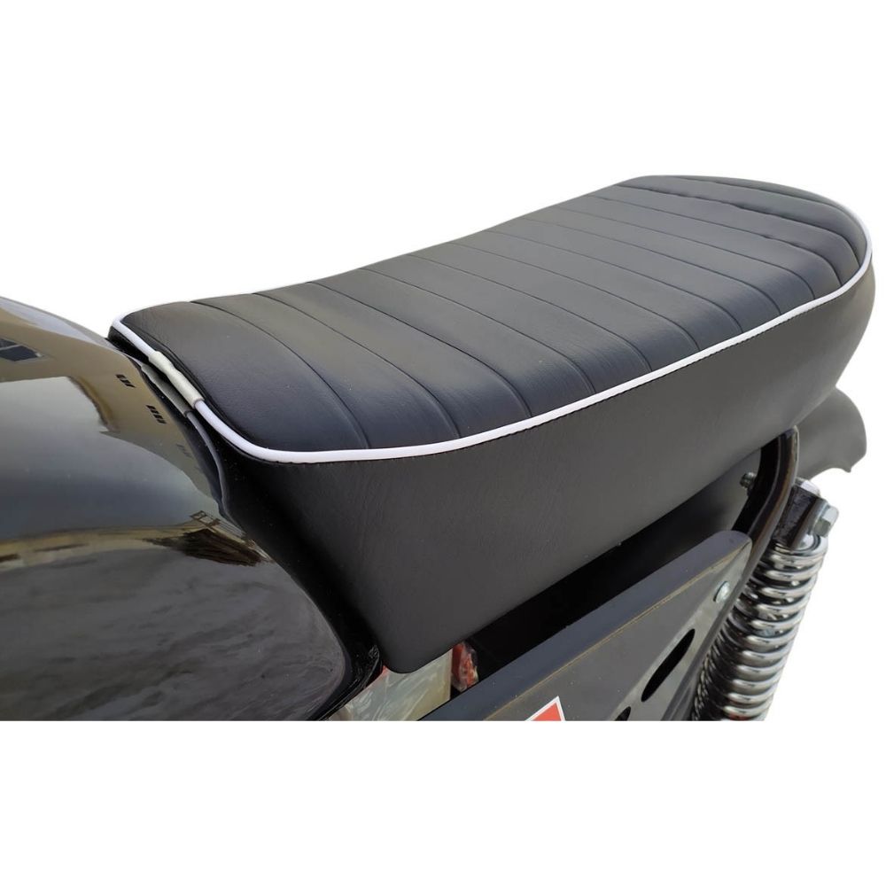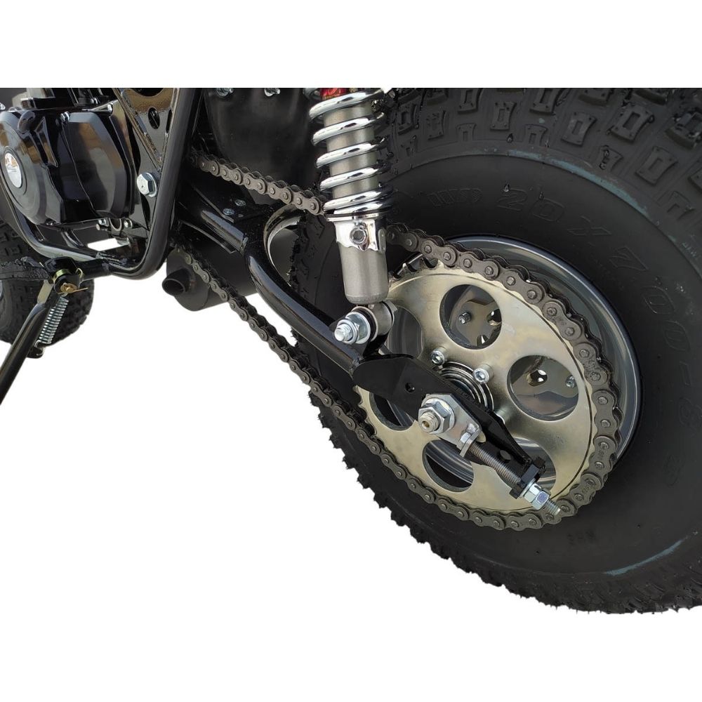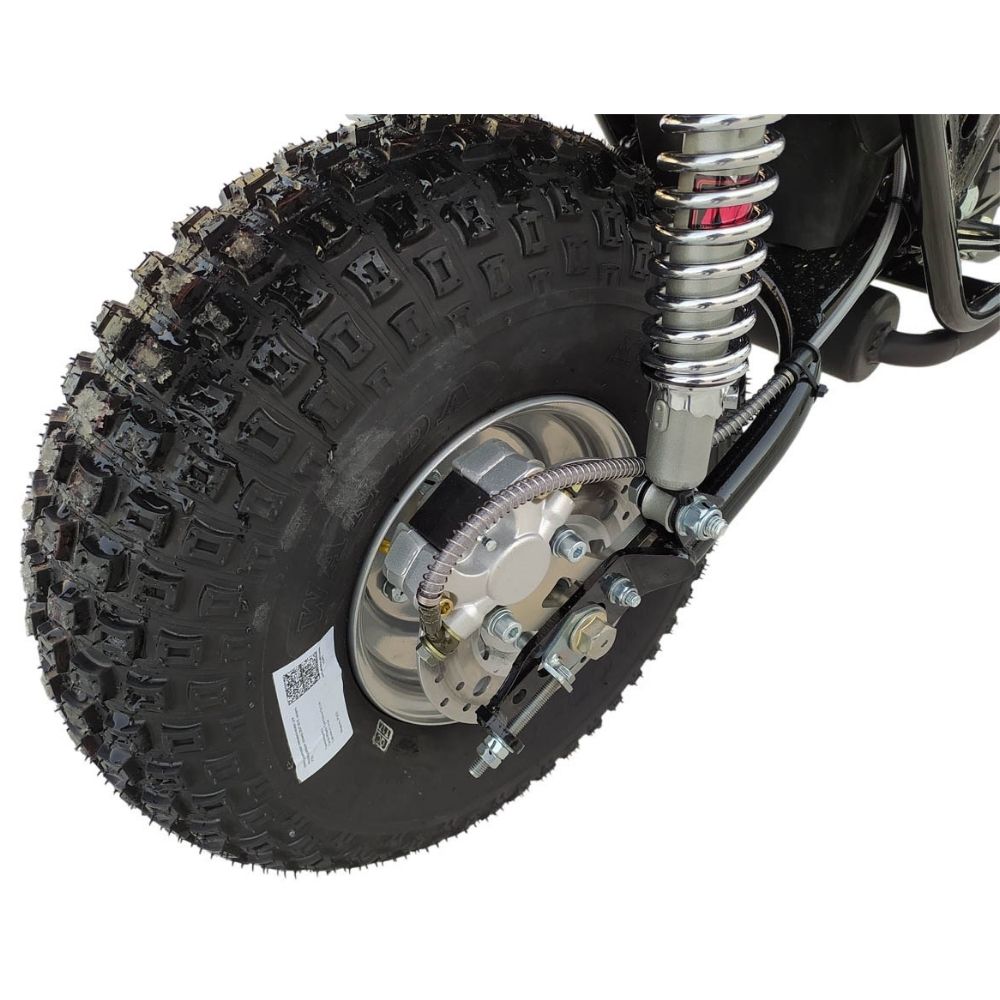 Передняя телескопическая вилка и задняя двухамортизаторная подвеска эффективно сглаживают неровности дороги, обеспечивая комфортную езду. Колёса с внедорожными покрышками 20×7-8" дают отличную устойчивость и сцепление. Мотоцикл оснащён дисковыми тормозами спереди и сзади, что обеспечивает уверенное и безопасное торможение.
