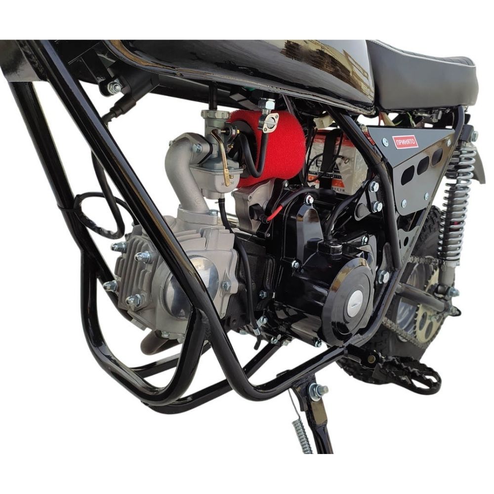 Оснащён автоматической трансмиссией и горизонтальным двигателем объёмом 110 куб. см, что обеспечивает плавное и простое управление без переключения передач. Запуск двигателя доступен как с кикстартера, так и с электростартера, что особенно удобно в холодное время года.