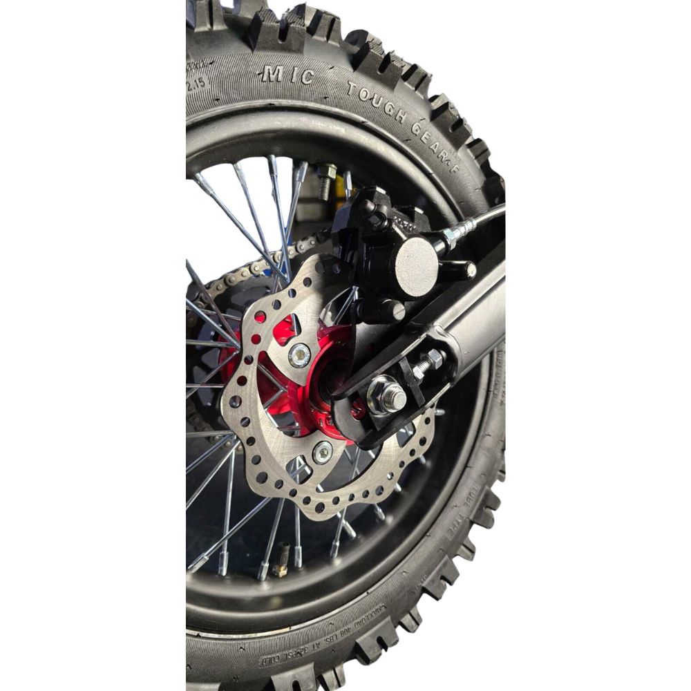 Колёсная база 1200 мм обеспечивает хорошую устойчивость, а прочная рама выдерживает нагрузку до 90 кг. Топливный бак объёмом 4,2 л позволяет проводить длительные тренировки без частых дозаправок. При этом общий вес байка — всего 75 кг, что делает его манёвренным и управляемым даже для подростков и начинающих.