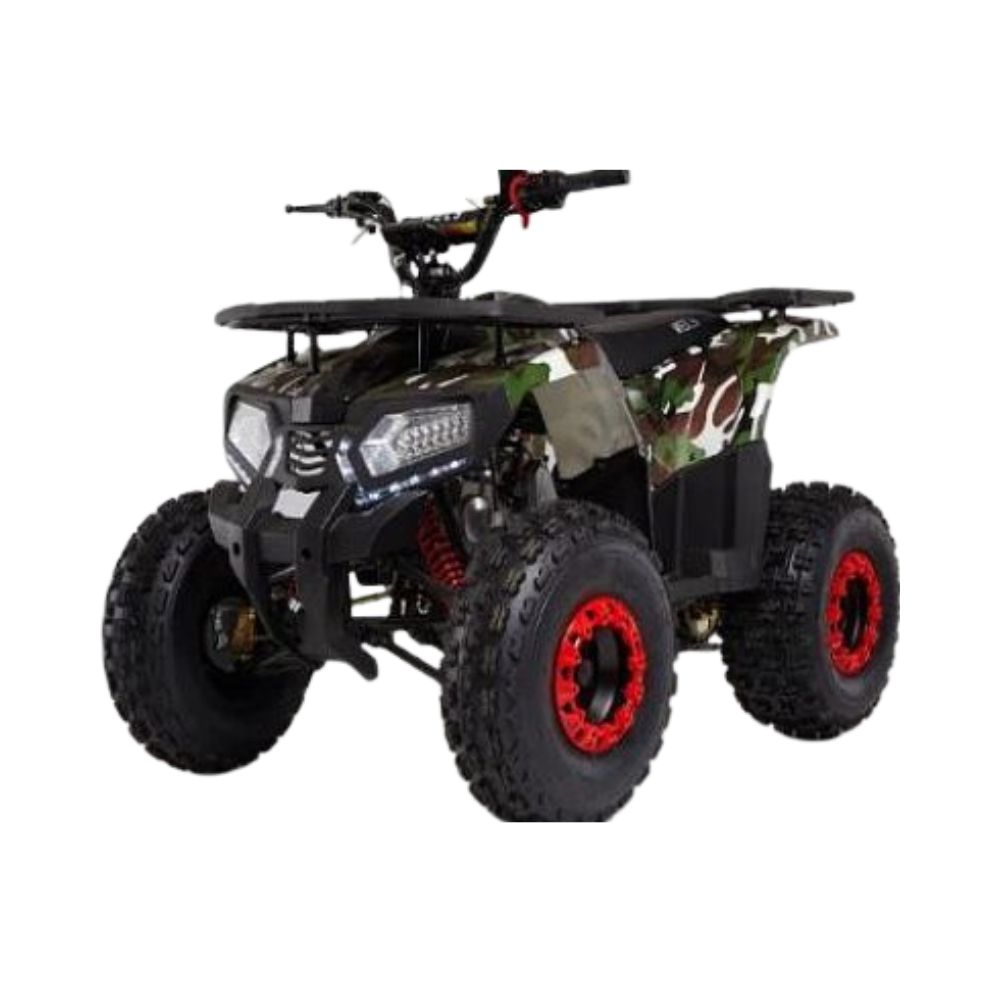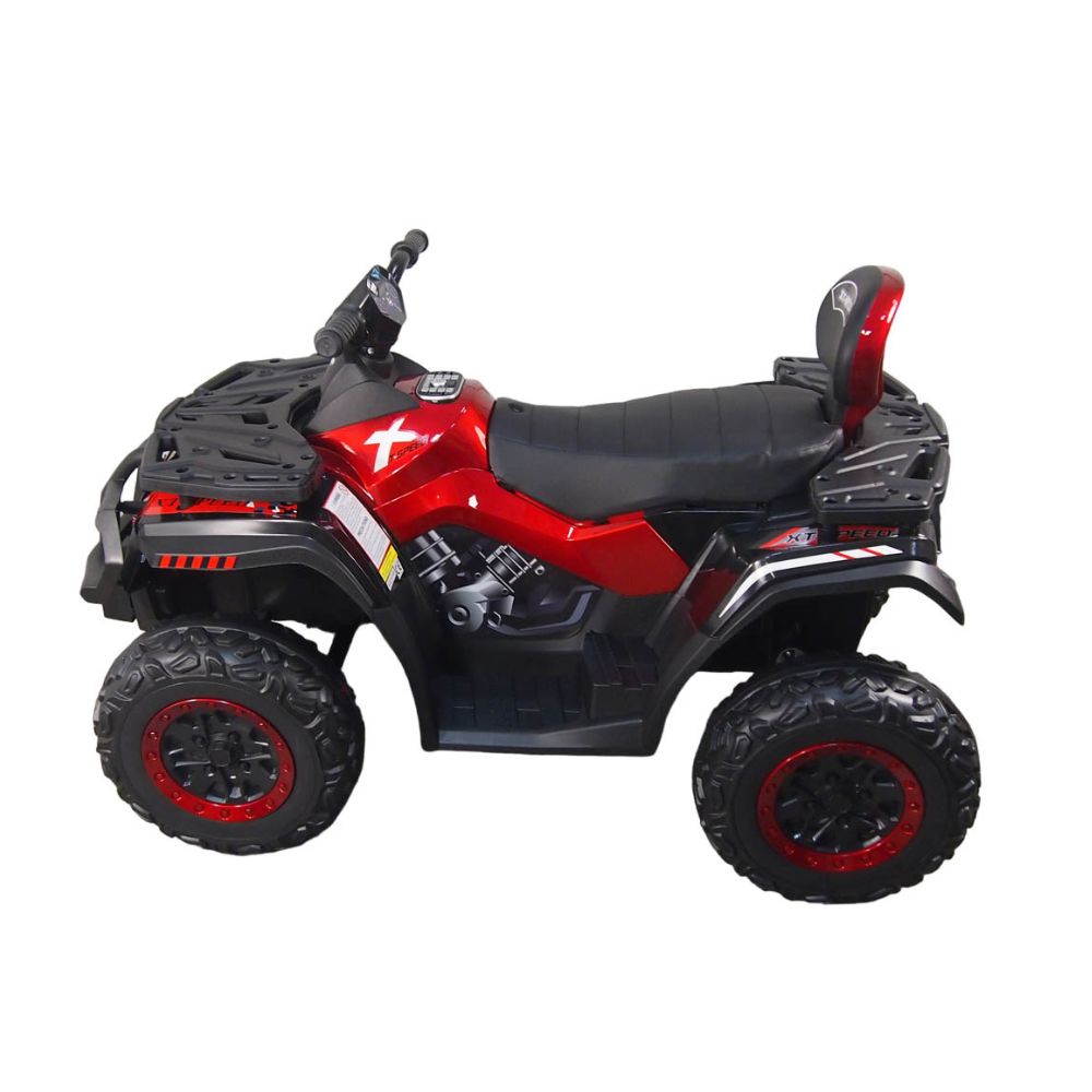 Квадроцикл заряжен мощным 800Вт-ным коллекторным двигателем на 12Ah штатной гелевой SLA батарее, развивающий до 20 км/ч при максимальной загрузке до 60 кг. Устойчивость при манёврах обеспечена более широкой расстановкой передних колёс и низким центром тяжести, мягкость хода подвески на различных